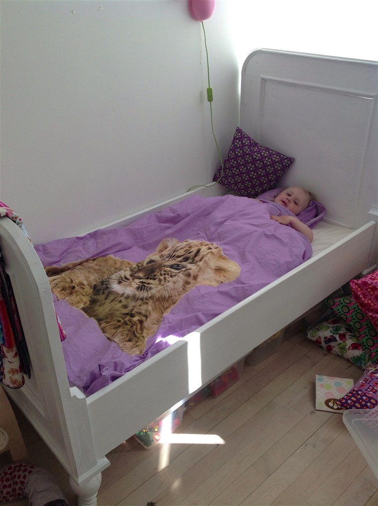 hun ligger bare stadig så uroligt og er bange for hun vil falde ud... især fordi vi planlægger at hun skal havde sådan en mellem høj seng, da vi pt bor på 54 kvm.