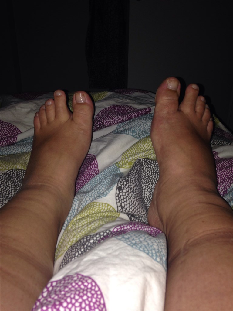 Kæresten har lige konstateret, at jeg stadig har væske i den ene fod - den var mere hævet end den anden. Øv.