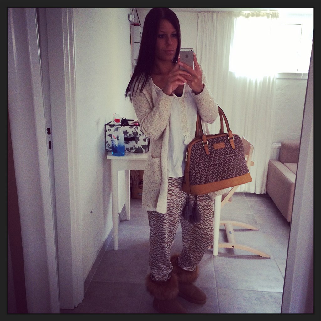 Til hverdag er det mest jeans, en t-shirt og cardigan. Ka også være leggings, med en tank top, med en " gennemsigtig" top ting over.