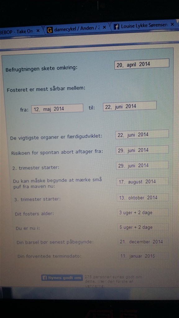Bare lige til Info så kan man se et navn i facebook fanen på billedet fra terminsberegneren..