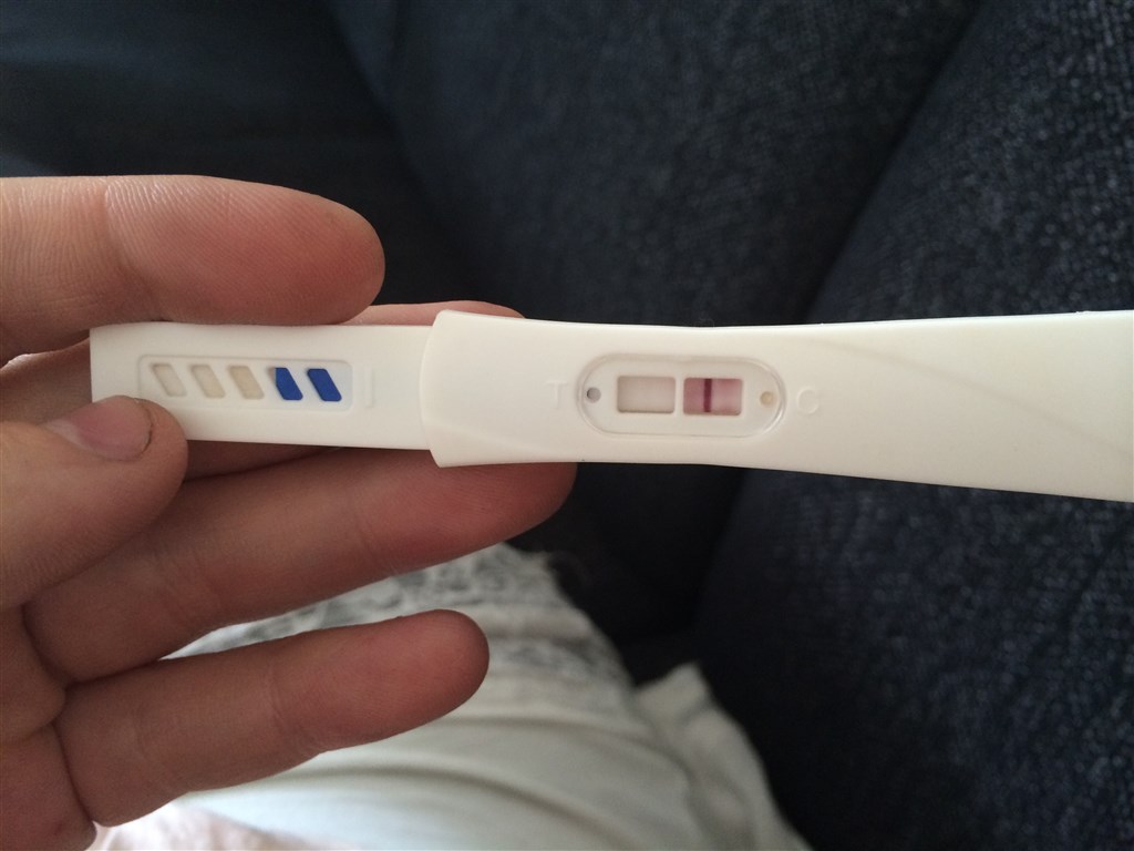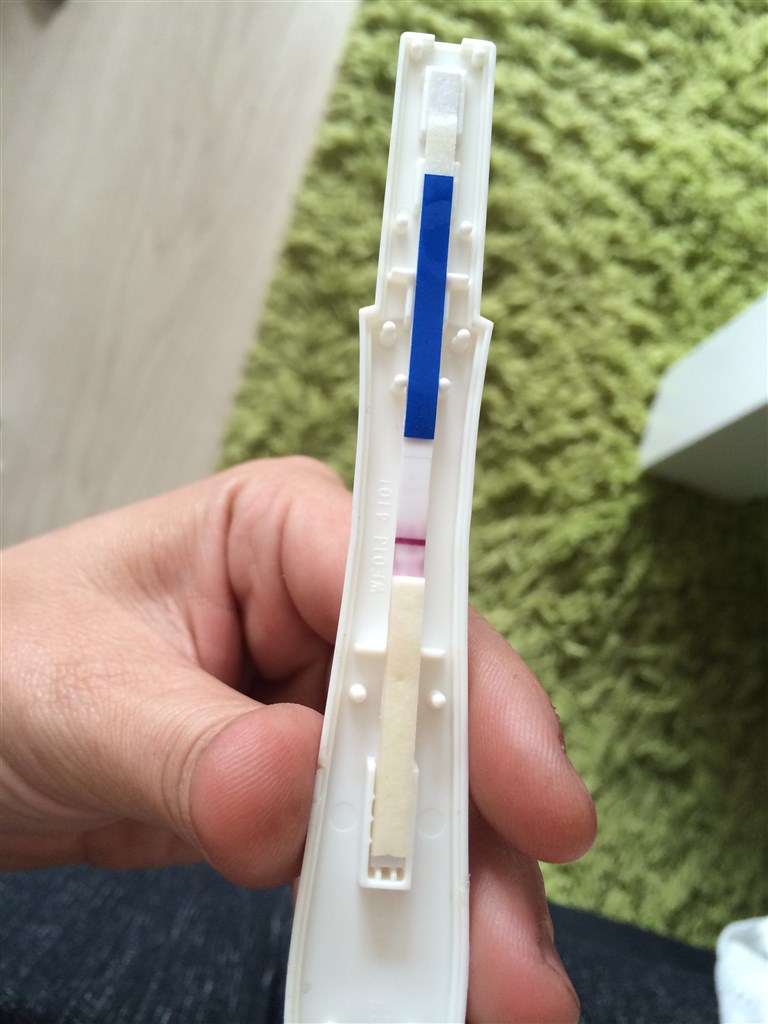 har været på job, og først ku teste nu... Nu ser testen sådan ud? :-) har stadig et lille bitte håb, trods at jeg i morges vågnede op og blødte en meget lille smugle...(min mens plejer at være voldsom de første par dage)