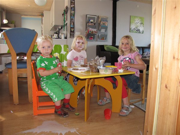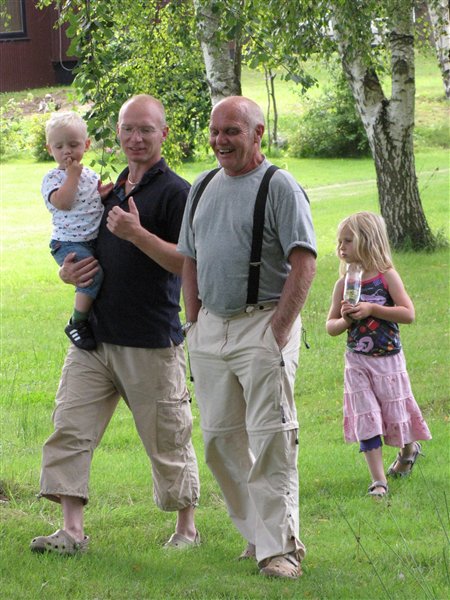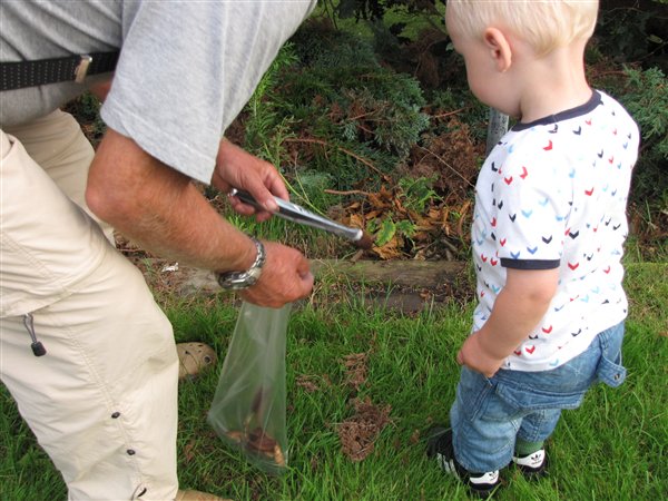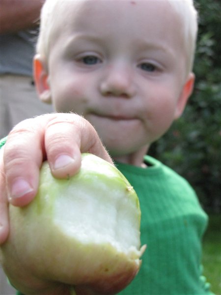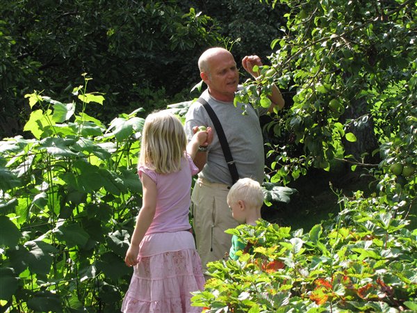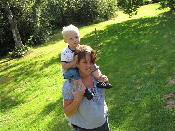 og en masse fra vores tur op til Farfar igår. Det var igennem en helt fantastisk dag. vejret var skønt og holdt tørt, vi sad udenfor hele dagen og bare snakkede og ungerne hyggede sig. Vi var på frugt rov i farfars have og gik tur rundt om den sø han boede op ad. og tildsidst gik der sport i at fange dræbersnegle.