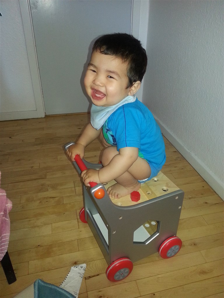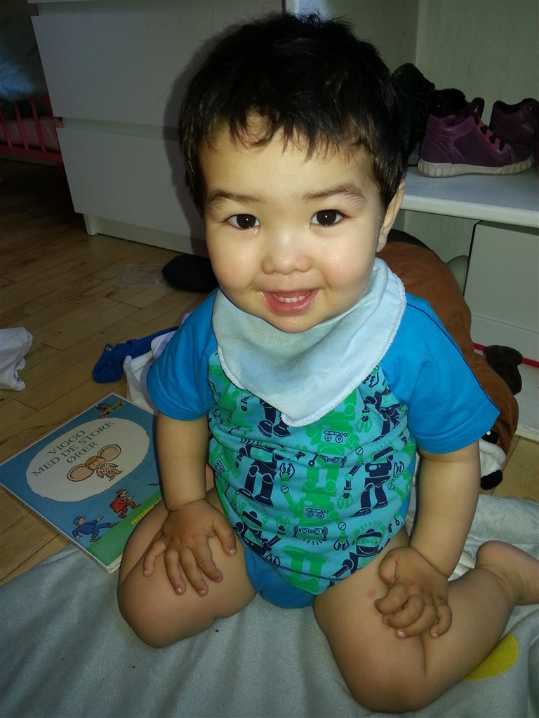 Han er en "rigtig dreng", som de også sige i vuggestuen. Det er helt anderledes end med Rose, men han er virkelig bare DRENG. Han piller i alt, kravler op på alt, han har ingen frygt i livet, så man skal seriøst holde øje med ham og passe på ham! Det kan godt være lidt hårdt arbejde, for man kan ikke rigtig lade ham være alene, han skal nok finde på noget farligt at lave, selvom man synes man har taget alle forholdsregler - Suk