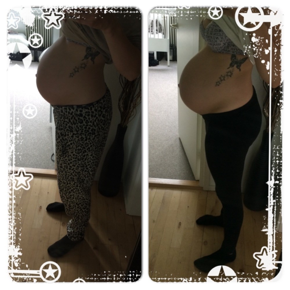 Billedet til venstre er fra i tirsdags (36+4) og billedet til højre er fra idag (37+0). Synes jeg havde mange kraftige plukkeveer igår aftes og i nat, men ikke så mange idag.