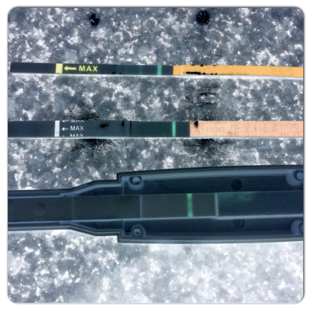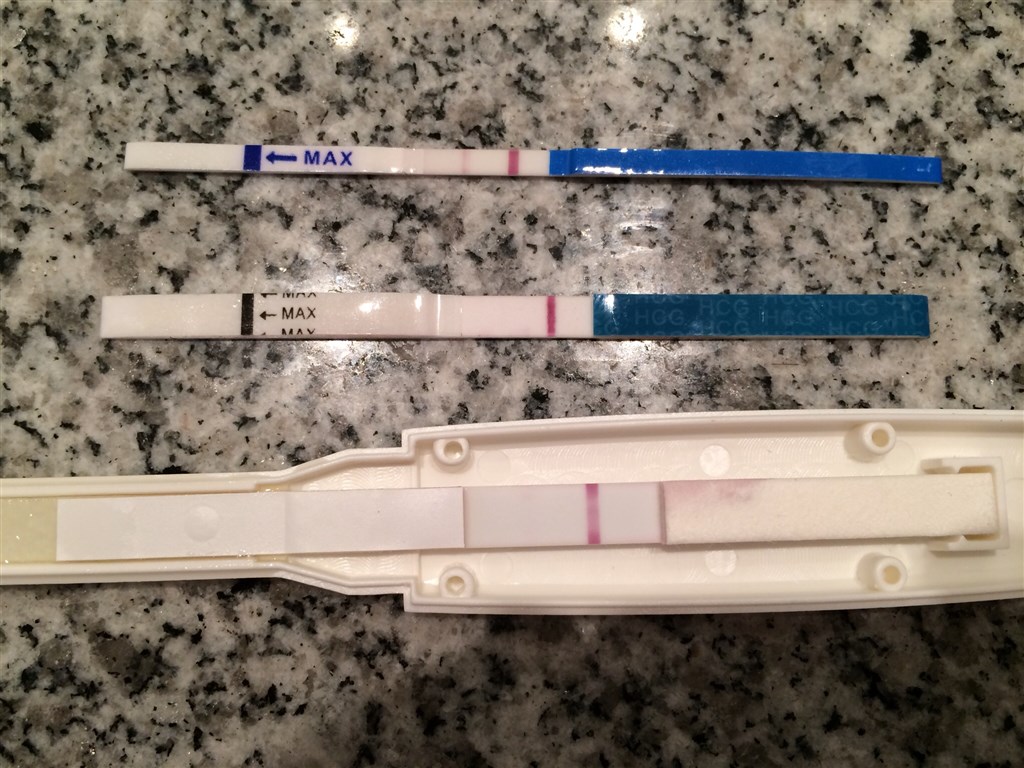 Den øverste er i hvert fald helt klart positiv. Kan ane en streg på én af de andre. Det ser ud til at i skulle have passet endnu bedre på hvis i ikke ønskede graviditet endnu.