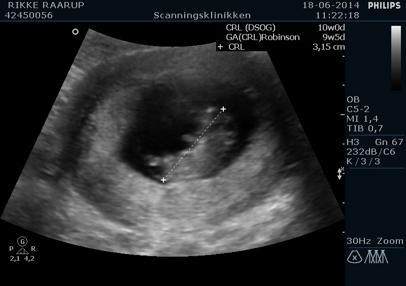 Heeeeeeeeeeeeeeeeeeeeeeej (1 smiley eller 2 kan forekomme) Nå. Er gravid efter vi mistede vores datter i starten af 2013. Lægen mente det var godt for mig lige at få en terminscanning, selvom jeg ikke var i tvivl om termin Det var dog ikke nogen god oplevelse overhovedet, og vi var meget forvirrede da vi gik derfra Faktisk anede vi ikke rigtig om der egentlig var noget og komme efter Vi besluttede derfor i går aftes at købe en scanning. Vi trængte begge til ro og så er det jo altid hyggeligt at kigge ind HELDIGVIS så vi den fineste lille babyspire. Målene passede til min udregning - 10+3. Vi så et fint hjerteblink og fin gennemstrømning. Grundet vores historie satte hun hjertelyd på Jep - crybaby Vi havde en super super oplevelse og var begge super glade da vi gik derfra. Vi ved dog begge godt at spiren stadig kan være syg osv osv.. Men nu har vi set liv og er blevet småforelskede Det hele er mere virkeligt, og vi ved hvad vi går ind til.