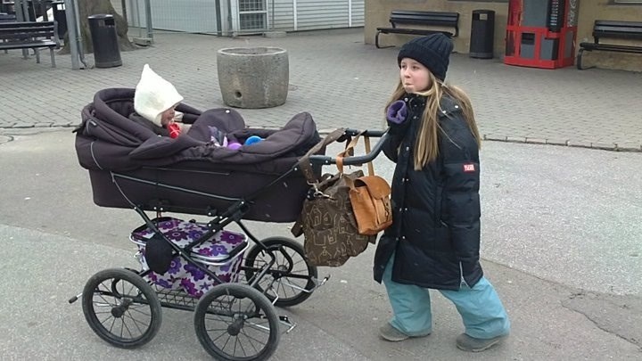 Jeg nåede at sælge barnevognen to mnd. Før jeg opdagede jeg var gravid med en ups. Så der skulle igen købes, denne gang købte jeg for første gang en ny vogn, en trille brun med giraffer i foret - det var min vogn, mørkebrun jubi.... Ville aldrig betænke mig og spare pengene og købe en trille igen hvis jeg skulle have flere børn (skal jeg ikke så derfor er den solgt). Storebror kunne sagtens sidde på den (og sove i den også) - ej bliver helt vemodig når jeg ser billeder