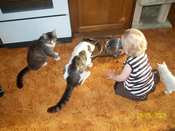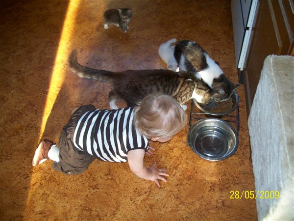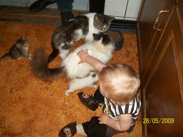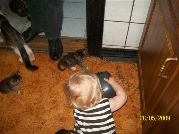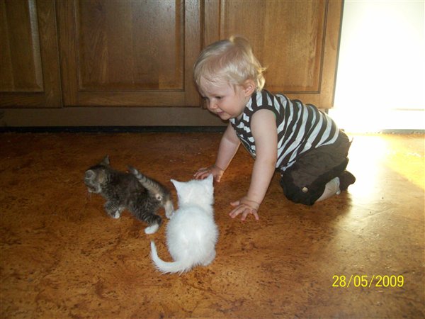 Moren er inde kat...Men killingerne har kigget ud lidt...Så de kan blive begge dele...