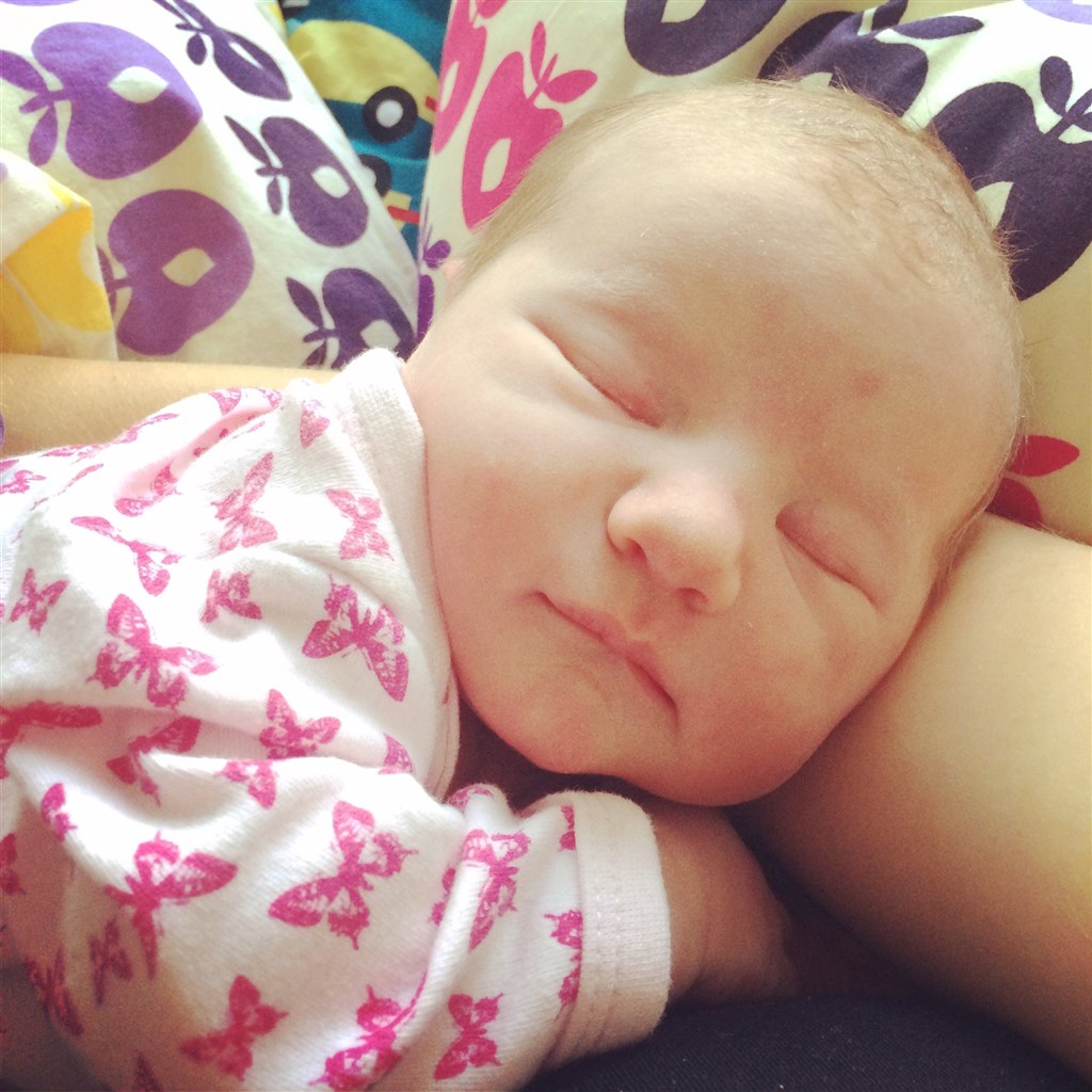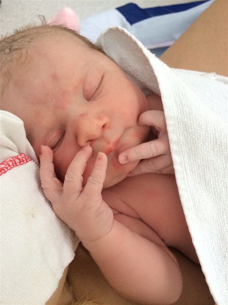 Der skete ingenting i løbet af dagen, men fredag morgen 4/7 (40+0) begyndte jeg at få murren i maven. Kl 14 var veerne regelmæssige med ca 4min mellem. Vi var på hospitalet 15:15 og der var jeg 4cm åben