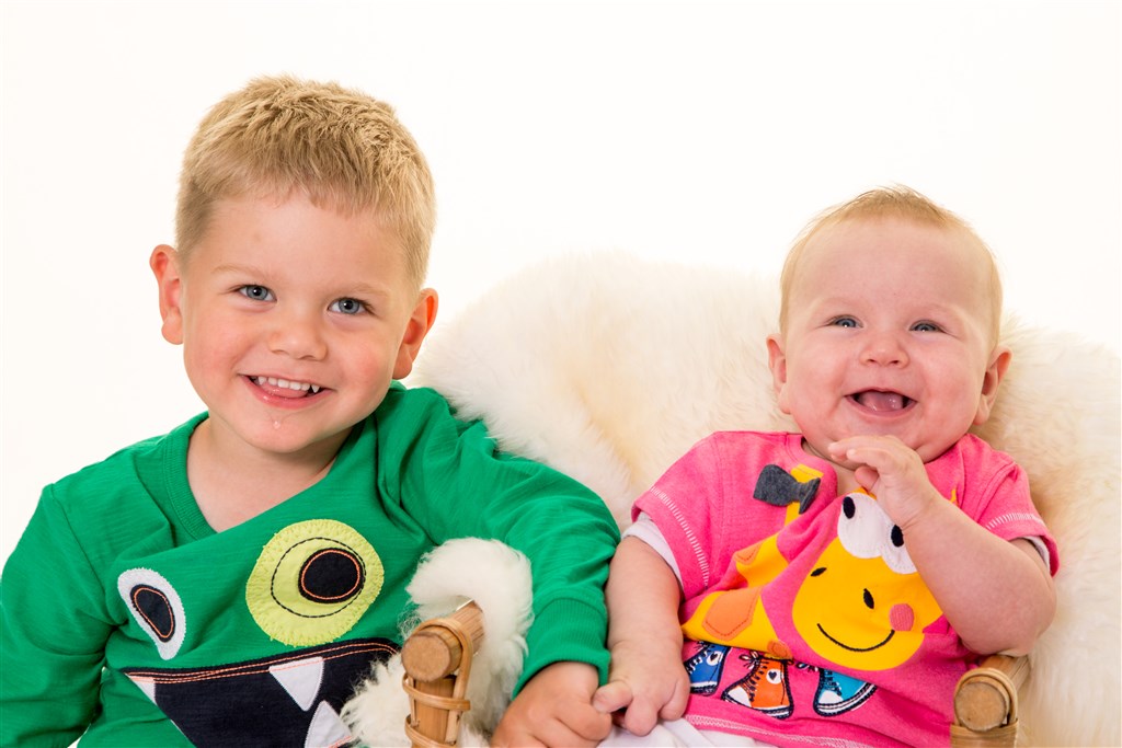 Nå men ellers er han en glad dreng, som elsker sin lillesøster til skyerne og tilbage igen!