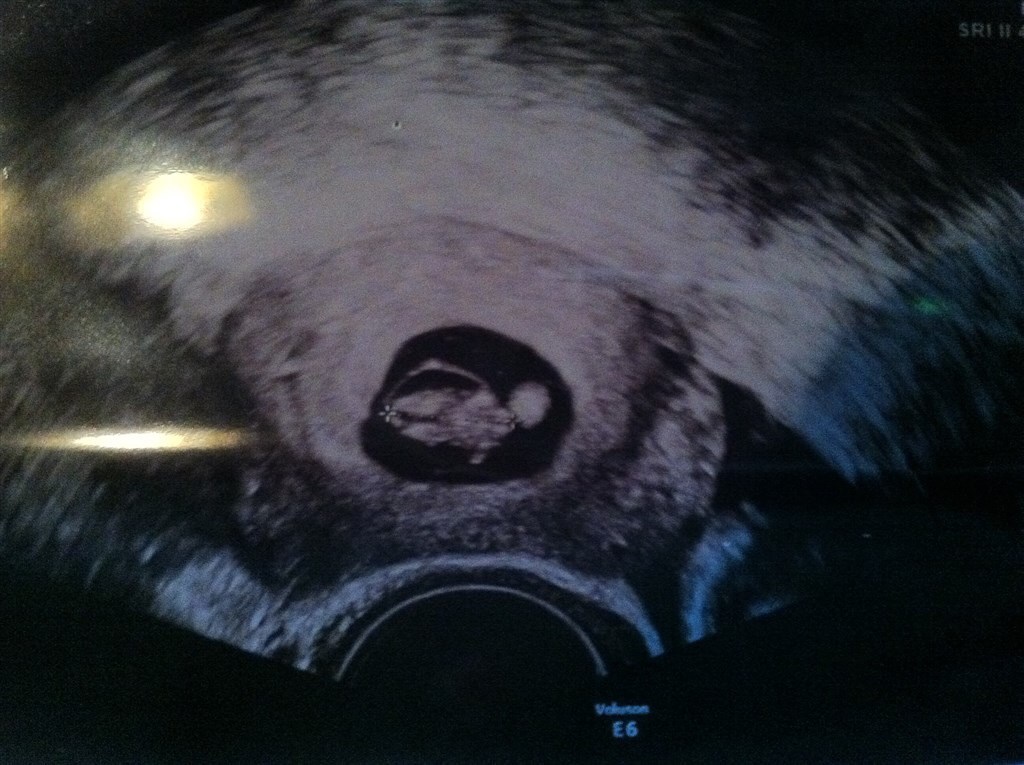 Vil dog sige at min scanning fra 7+2 så meget anderledes ud. Der kunne man se en aflang, lys "dims" inde i blommesækken.