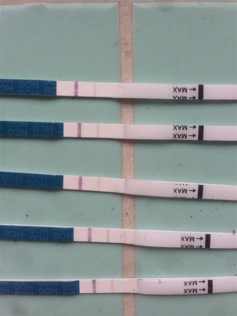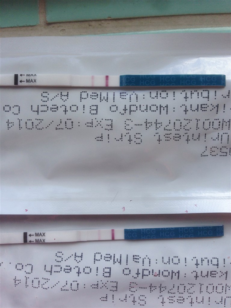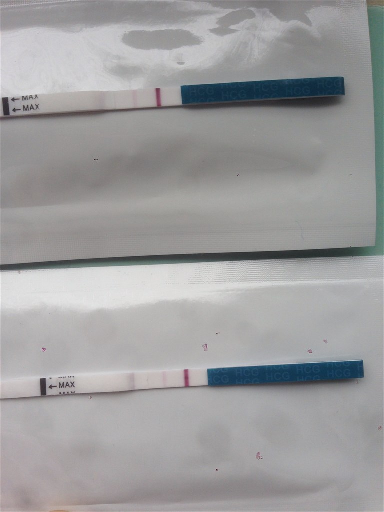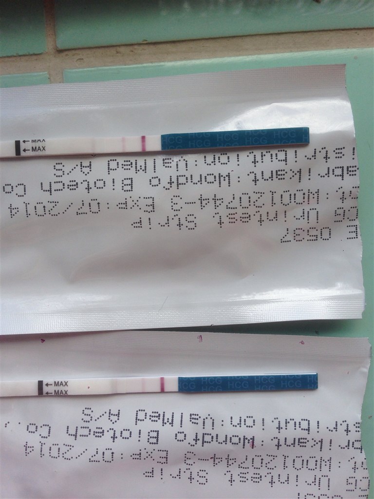 Nå men jeg har så lige tager de her teste for 5 minutter siden, stregen kom efter et minut ca, troede ikke helt på den så tog lige en mere, også her kom stregen, dog lidt langsommere men den er der, og nu mens jeg skriver dette indlæg er de begge blevet mere tydelige end da jeg tog billedet.