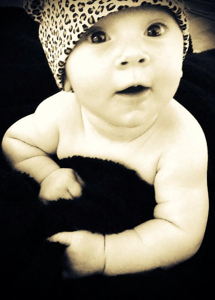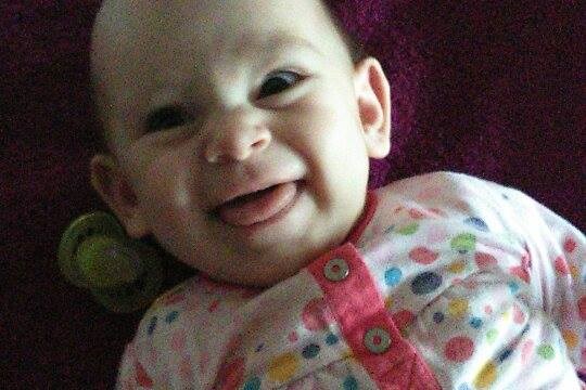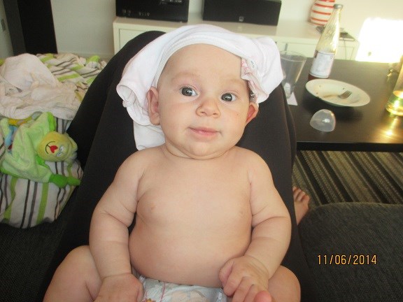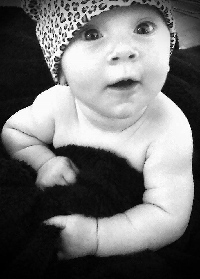 Hun bliver snart 5 mdr..kan ikke så meget endnu men f'ølger sit eget tempo! hun sover ikke igennem men vågner kun 1 gang! hun har sovet på eget værelse siden hun var 8 uger! hun er så nem altså! men vi startede livet ud med en god omgang kolik