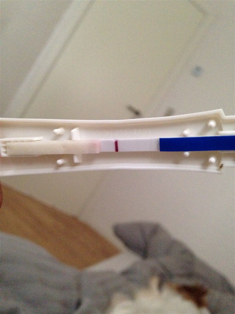 Jeg har hele sidste uge testet meget svagt positiv, torsdag i sidste uge var det en uge over forventet mens, og fredag og søndag middag havde jeg to teste, hvor begge var mere tydelige, med mere farve. Testede til morgen, hvor den ikke havde ændret sig. ( tester bedst middag/ eftermiddag!) Men stadigvæk ikke helt så meget farve så strengene er ved at være lige tydelige. De