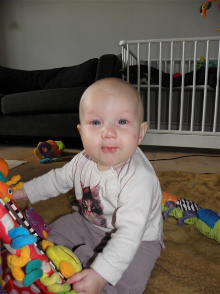 Var lige oppe at få hende vejet i går - tøsen vejer nu 8,6 kg!! hun bliver 5 måneder på lørdag, så synes godt nok det er meget! Glæder mig til at hun begynder at kravle lidt rundt - hun kan jo ikke blive ved med at tage på i den fart!