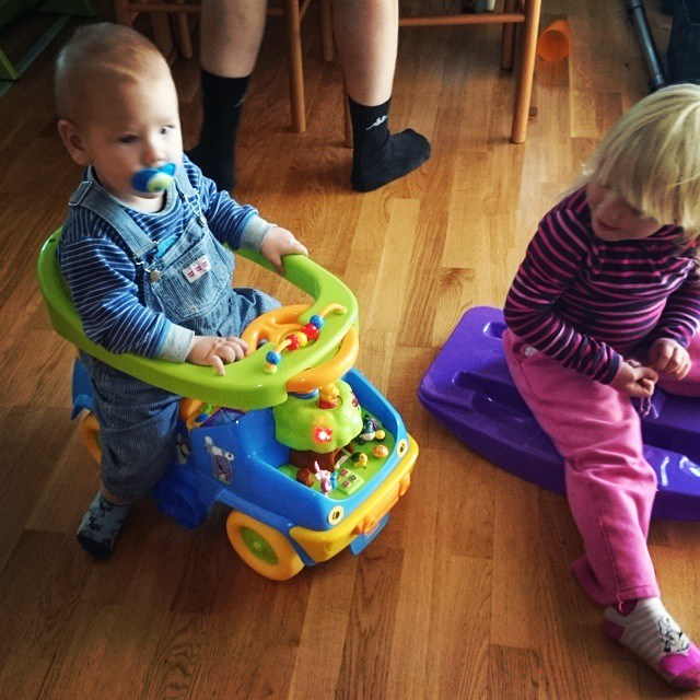 Han startede i vuggestue den 1/8, så han er godt kørt ind nu - i samme hus som storesøster der går i børnehaven