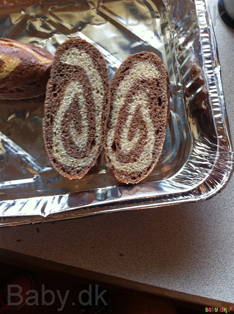 Den mørke dej er lavet af halv hvedemel, durummel, lige mængder kakao og sukker, 2 æg, lidt mælk og lidt flydende smør og 1/2 pakke gær.