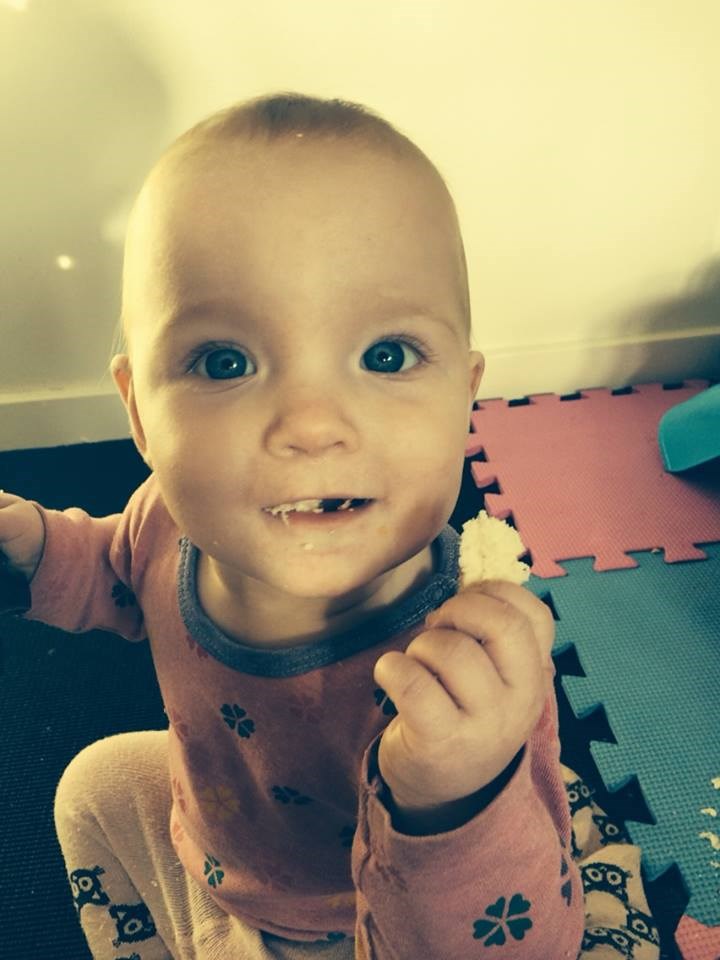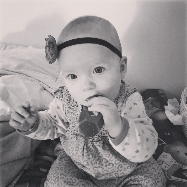 Og en lille pige der dog stadig kun kravler rundt, men kan stå selv når hun ikke lige registrere hun gør det