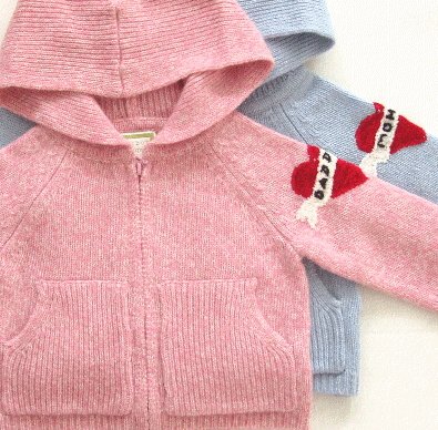 Jeg har en enkelt lyserød Amber Hagen vendbar hættetrøje tilbage. Størrelse 12-18 mdr. Den saelger jeg for 650 kr + forsendelse.