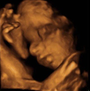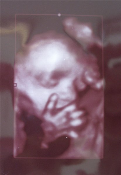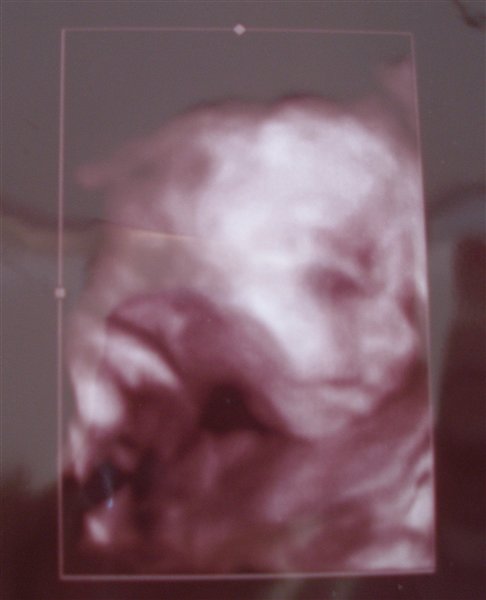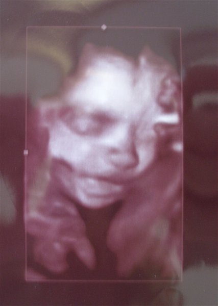 Her er min lille pige i uge 26 + 6. Hendes vægt blev skønnet til 777 gram.