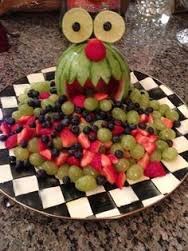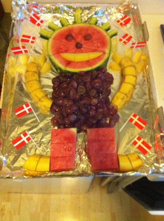 Man kan få sådan nogle muffinforme i pap istedet for tyndt papir. Dem har jeg brugt af og til fx til uddeling i min egen børnehave da jeg gik på barsel. Jeg skar forskellig frugt (fx melon, nektariner, blåbær, vindruer osv.) og opbevarede i bøtter indtil lige før servering. Det kan sagtens anrettes før hvis det ikke er æbler og sådan noget. Hvis man vælger mange forskellige farver (ananas, gul - vindruer, grøn - blåbær, blå - jordbær, røde fx) ser det rigtig festligt ud, evt. med et flag stukket i frugten.