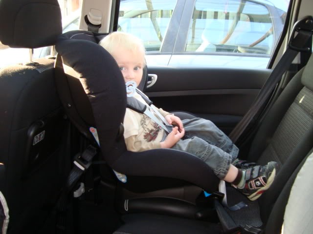 Nu står vi og skal tage imod et lille barn på 9 måneder (i fuldtids pleje). Vi får derfor behov for en ekstra stol. For at vi kan have plads til os alle 5 i bilen, skal det være en stol, som kan monteres i midten af bagsædet. Efter en grundig vejledning og afprøvning af flere stole i den lokale Babysam, blev det til en bagudvendt stol.