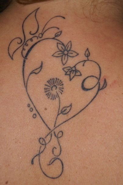 lineog4 skriver: Har en og skal ikke have flere (selvom jeg nogen gange er fristet). Den sidder på ryg/nakke og er en tatovering der symbolisere min døde datter (jeg kan se der står hendes navn lia men det kan de fleste andre ikke)