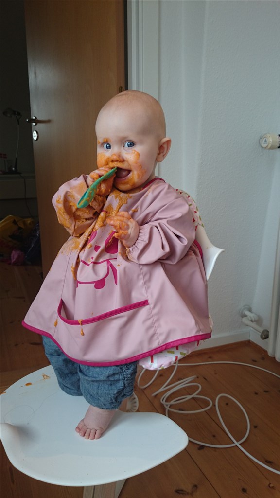 Da hun var 7 mdr - dog mest med hele hånden ikke så meget med skeen