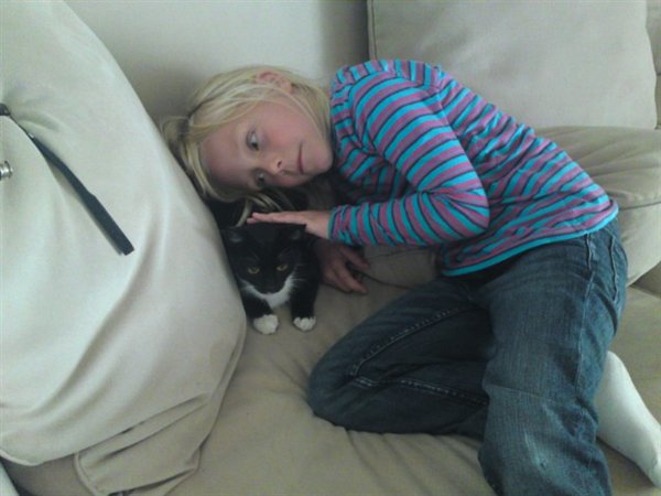 De har sådan en overdækket terrasse oppe ved drivhuset og der har min far så "redt op" til den og der har den så sovet og været inde et par gange om dagen. Har dog vist stor nervøsitet når de lukkede døren udtil. Var ret sky men alligevel kælen.....