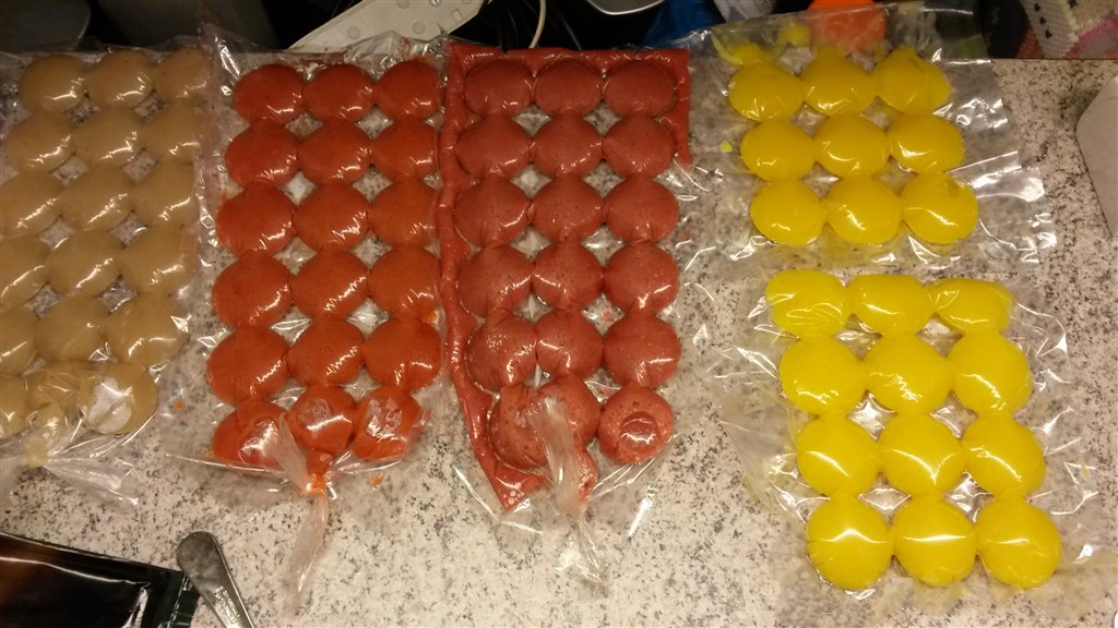 Jeg har altid lavet det selv, synes det var noget mere lækkert! Jeg lavede det i muffin forme i silikone og så frøs jeg dem, så jeg kunne trykke dem ud og smide i en pose, men de der isterningeposer er da noget nemmere og smart med en sprøjtepose!