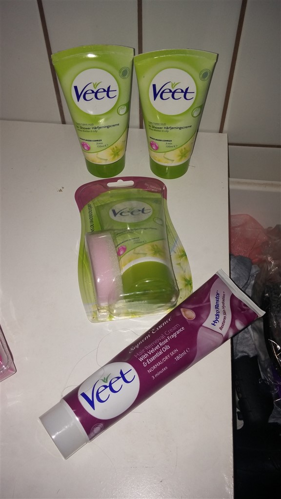 Så er det ved at være sæson til bare ben. Derfor sælger jeg disse veet-produkter. Den ene grønne er taget af. Resten er ubrugt.