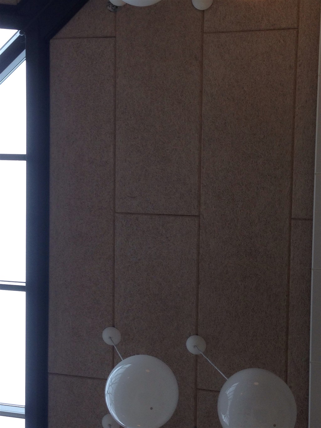 min storebror har en stribe af det, over loftet i deres køkken alrum. Det giver en god rumklang. syns ikke deres er grimt