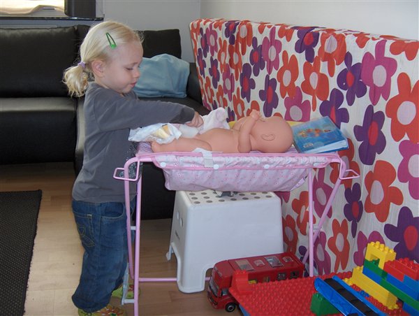 + det løse.. Stella har fået et puslebord til "Anton" i storesøstergave og hun står og skifter ham der all day long