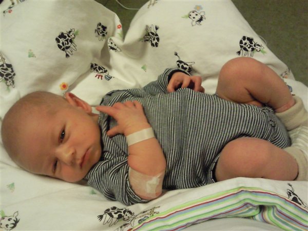 Vagtlægen var bange for at han måske alligevel kunne have fået den streptokok-infektion under fødslen, hvilket i værste fald kunne være livsfarligt, så vi skulle indlægges med det samme.