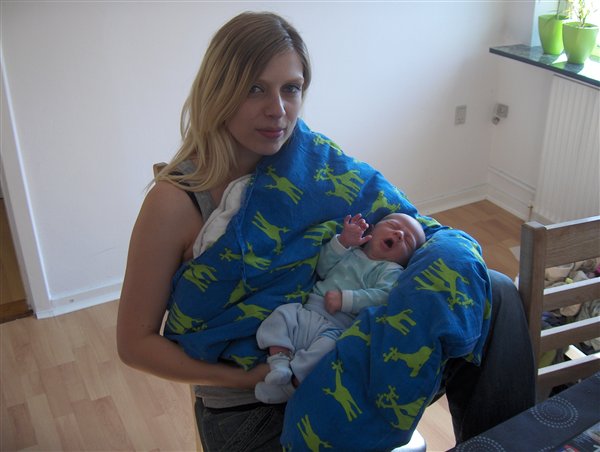 Vi er 4 bleer fra at løbe tør, jeg trænger til et bad, Stig er startet på arbejde idag og jeg skulle stå med begge unger alene og sørge for afl. for første gang!