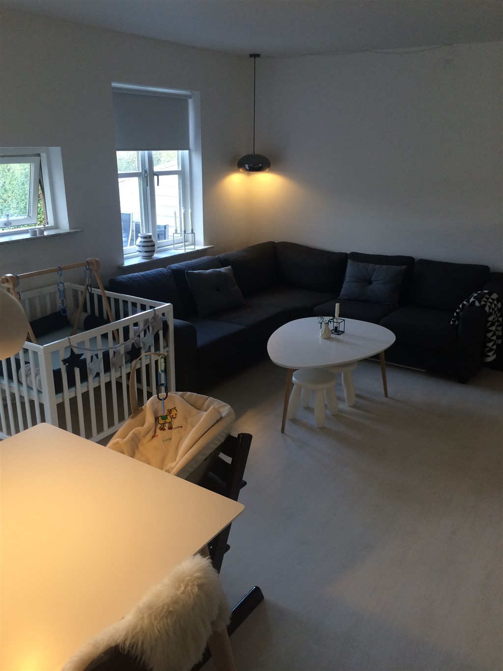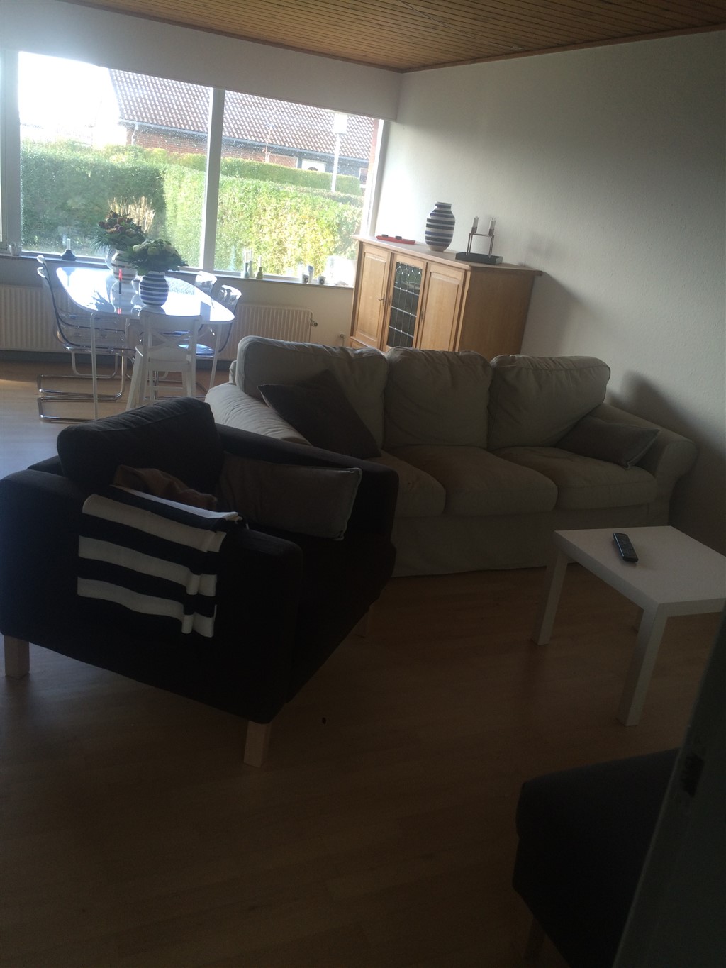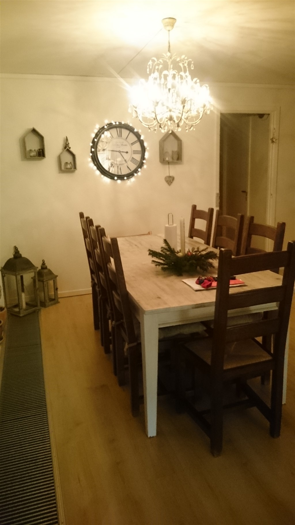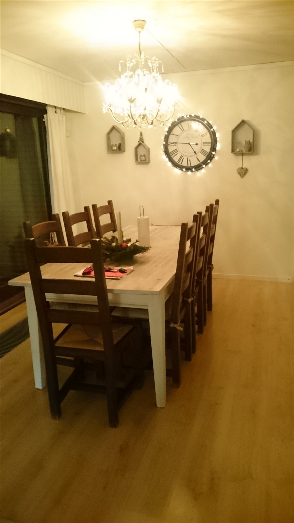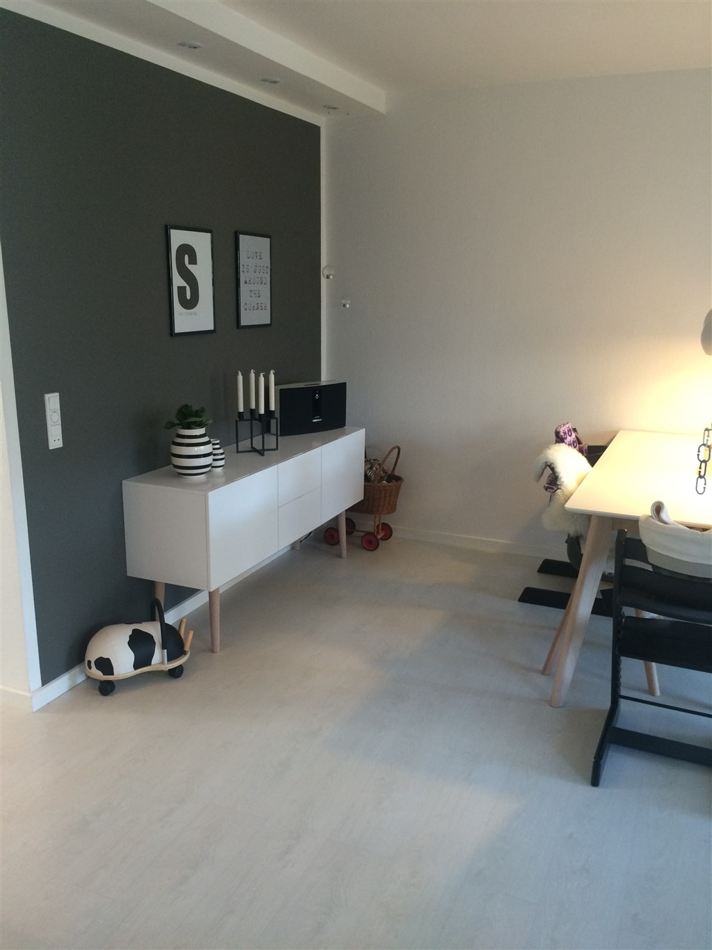 Vores køkken/alrum med spiseplads, som det så ud for nogle måneder siden. Nu har jeg rykket bordet lidt, og vi har fået en sofa/slagbænk/hyggehjørne i det hjørne hvor jeg har taget billedet fra. :-)