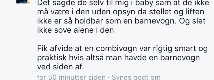 - Og det har min datter alligevel gjort siden hun var 7-8 mdr, når vi har været på tur. Barnevognen har ikke været i brug andet end hjemme på altanen siden jeg købte klapvogn.