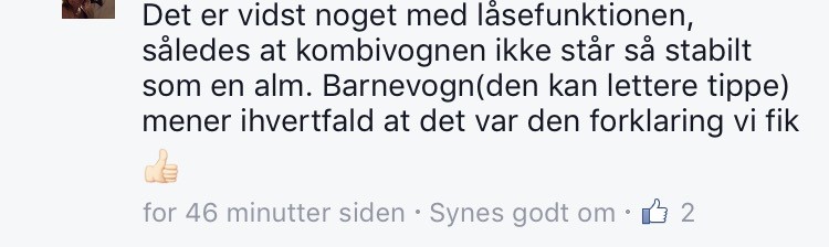 Og den tipper ingen steder den vogn.. Bremsen er også fuldstændig magen til den der sidder på barnevogne af samme mærke.