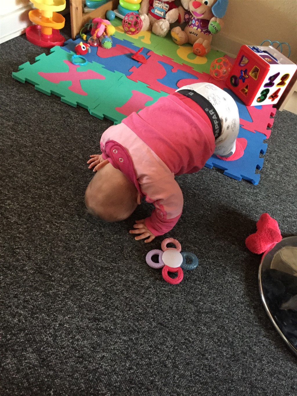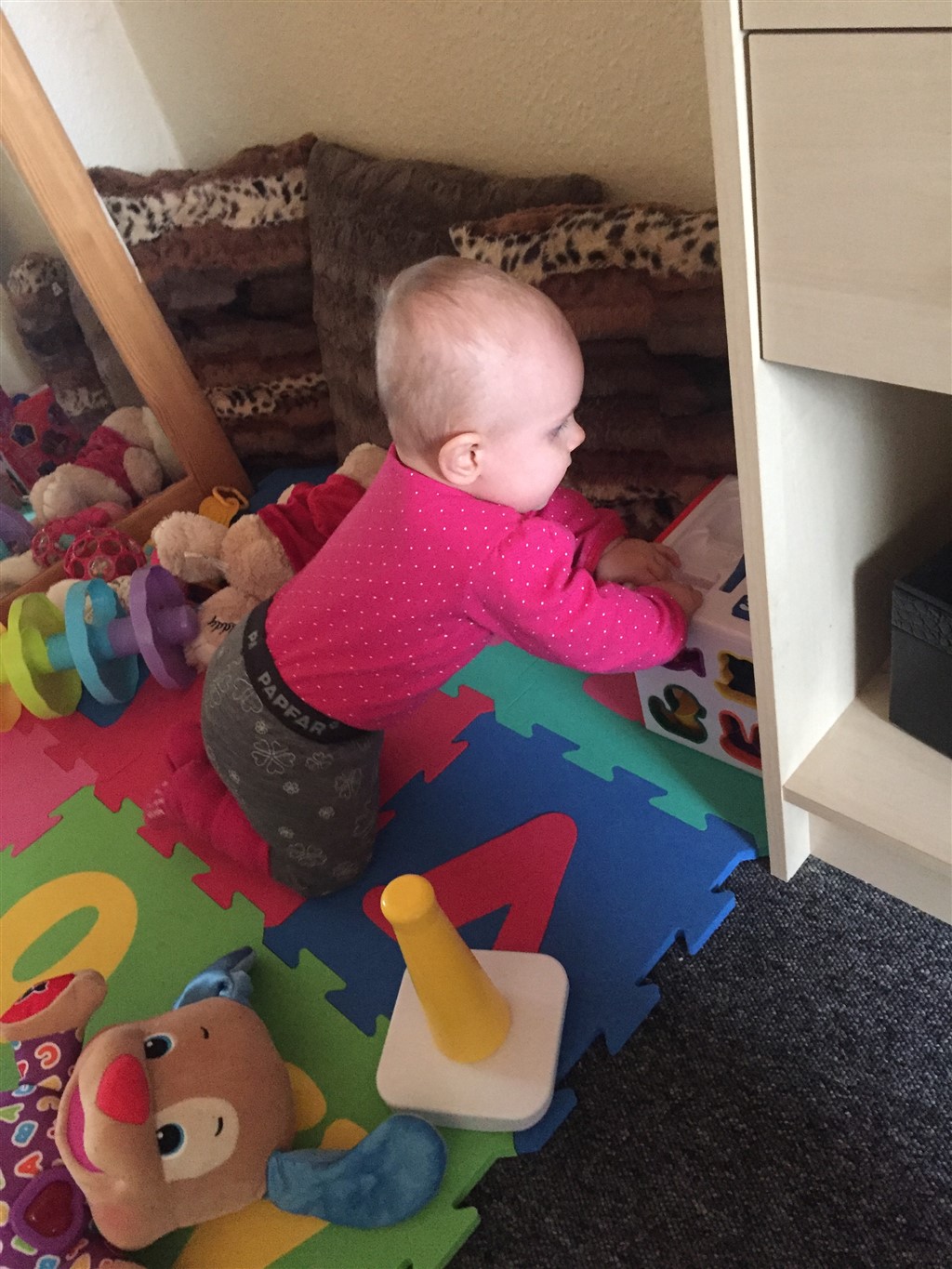 Min datter på ni mdr begynder at " stå " op på knæ ved ting, hvornår vil i tage en gåvogn i brug? Har en brio gåvogn hvor der er klodser til (: