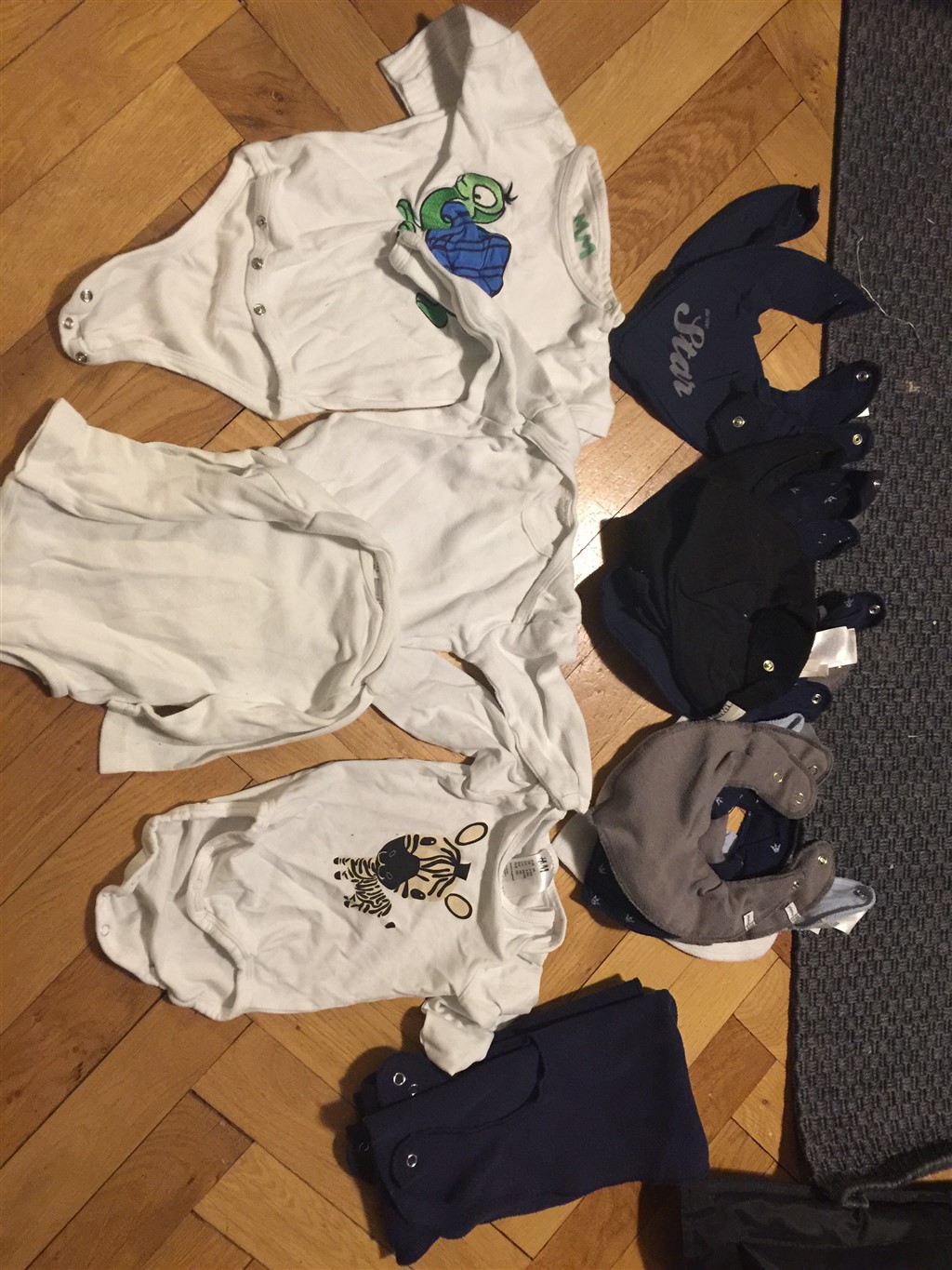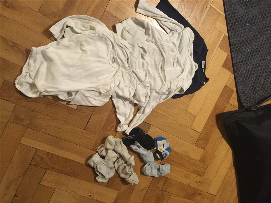 Der er mange savlesmække og rigtig gode og næsten nye babyforklæder, bodyer og natsæt og bluse og t shirts