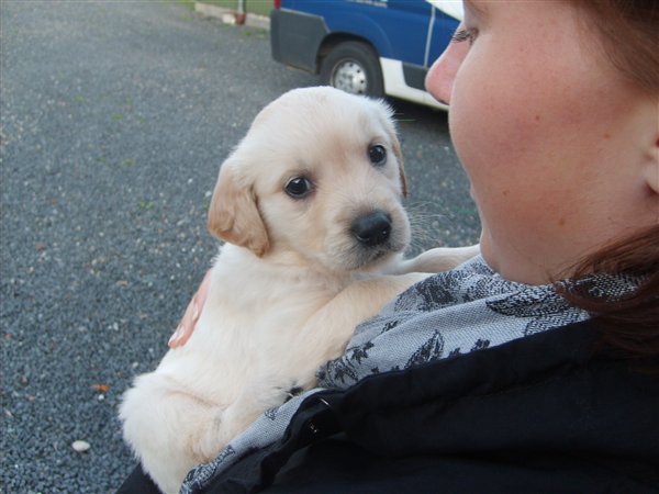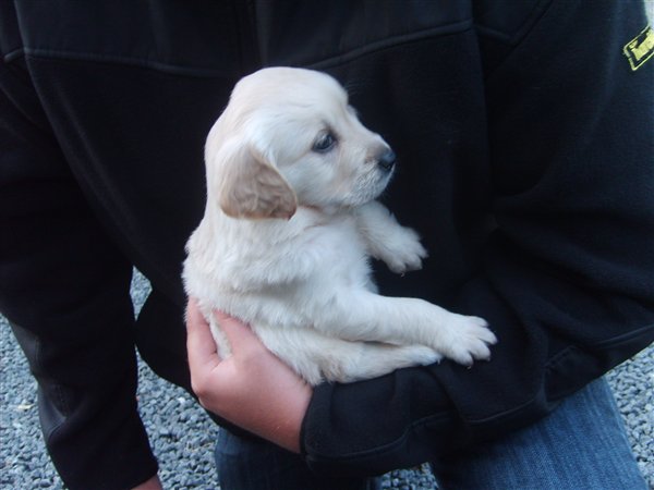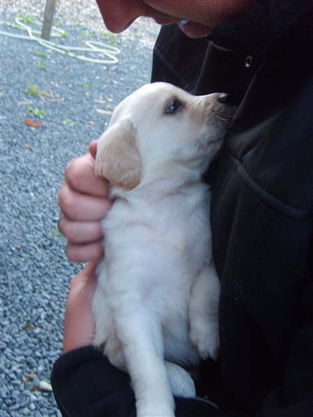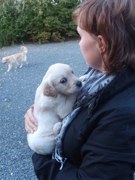Vi har fundet hende igennem Dennis' svogers bror, de havde købt en hund hos den kendel hun er fra og vi fik at vide de havde et nyt kuld som var klar til oktober så vi tog ud og kiggede og der var hun bare