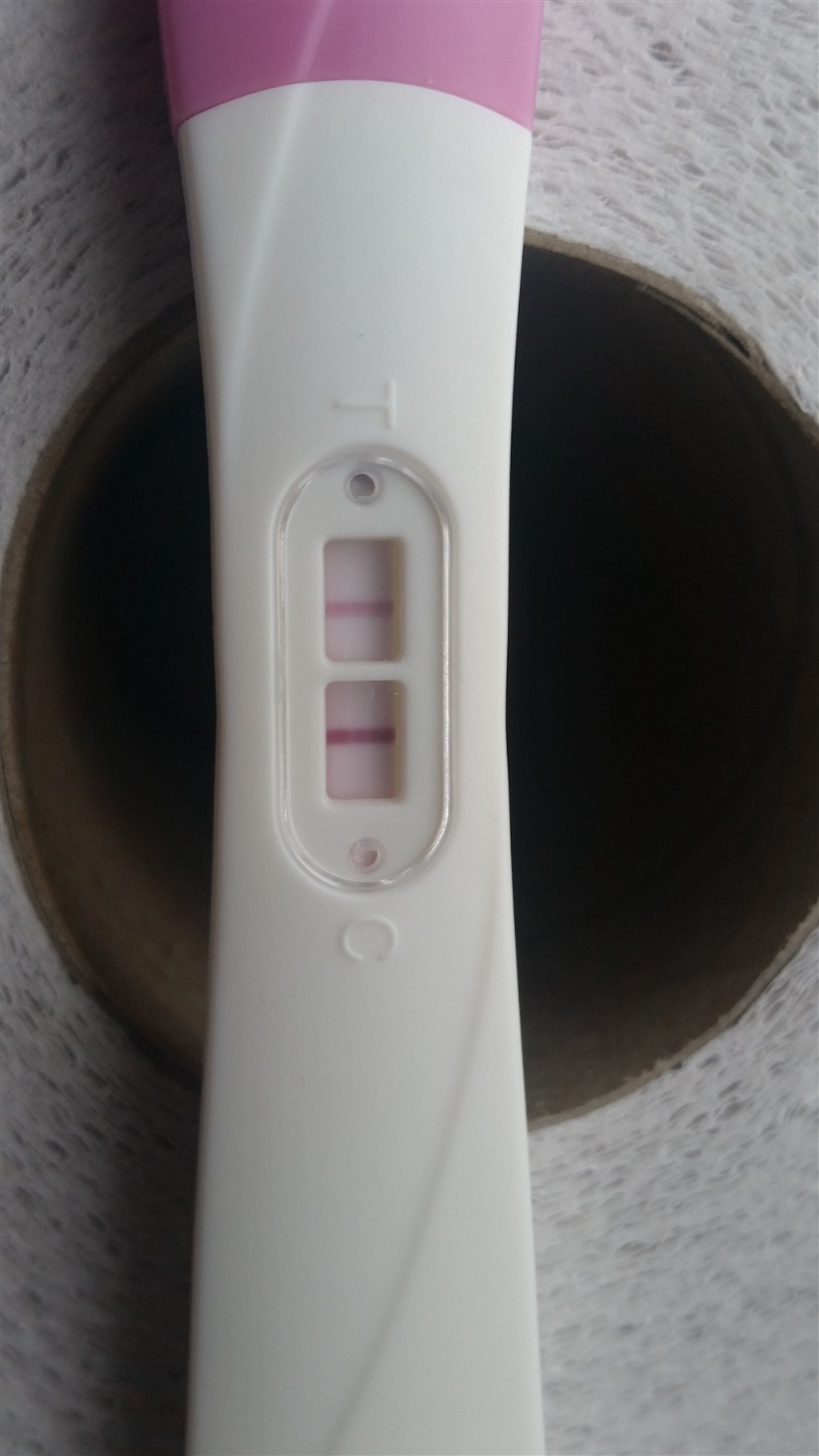Jeg kunne faktisk teste svagt positiv allerede den 27. april, men da stregen var meget svag turde jeg ikke helt at tro på det