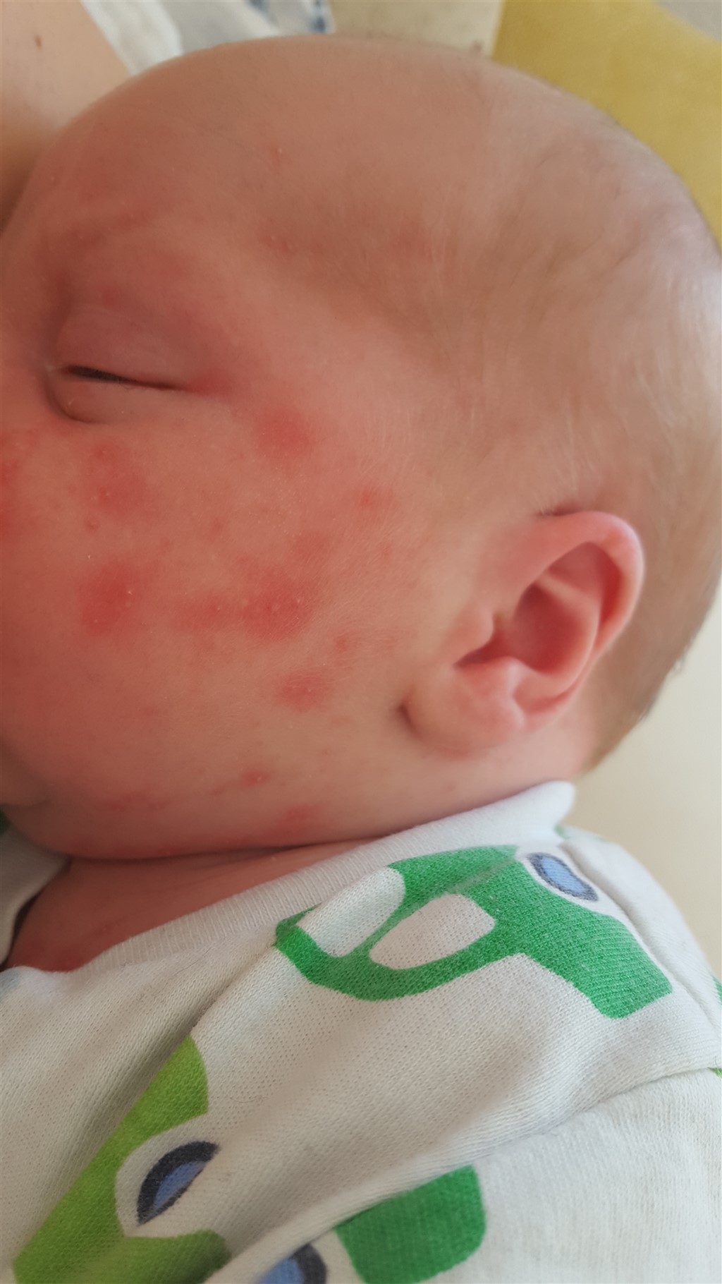 Jeg har en dejlig lille søn 3,5 uge, og sidst vi var ved sundhedsplejerske nævnte hun det med at hun kunne se han havde de der hormon knopper. Men jeg syntes virkelig der er kommetale mange. Det sidder på kinderne (se billede), halsen og på brystet.