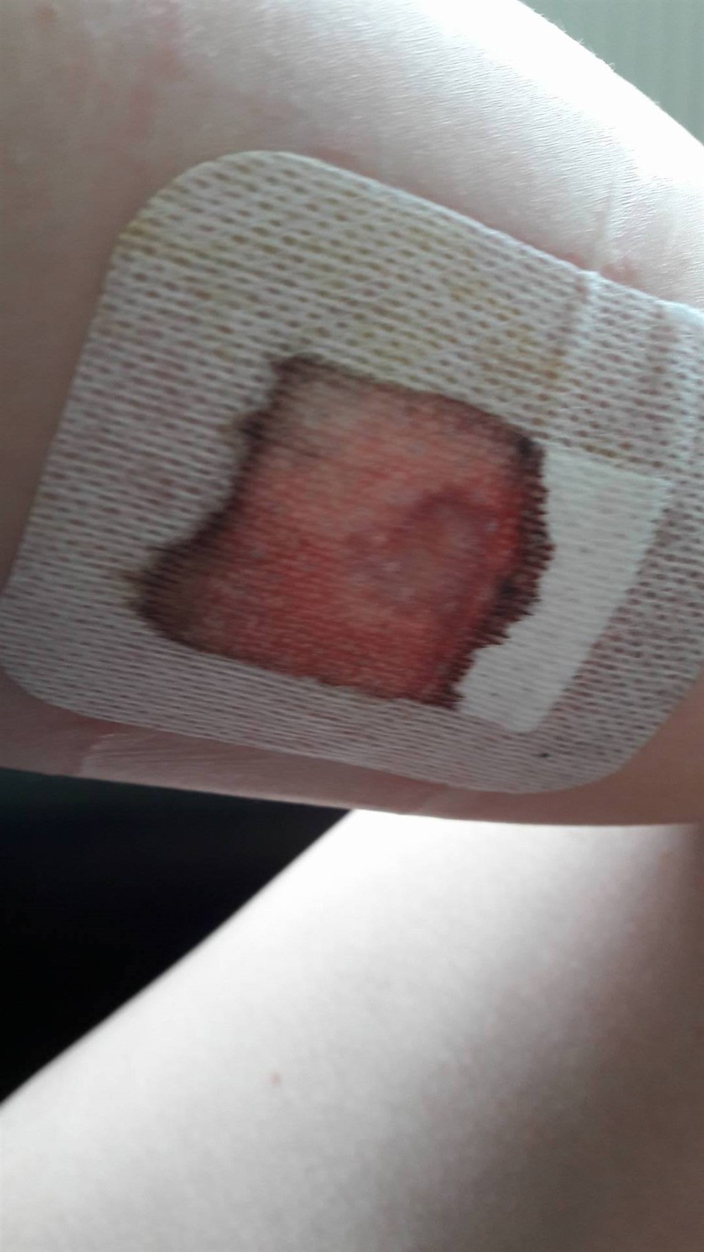 Jeg fik i går fjernet min p-stav og fik plaster på såret, og noget tape som jeg fik at vide bare skulle sidde til i dag. Så jeg har lige taget det af, og må indrømme jeg er ret overrasket over hvordan plasteret indenunder ser ud