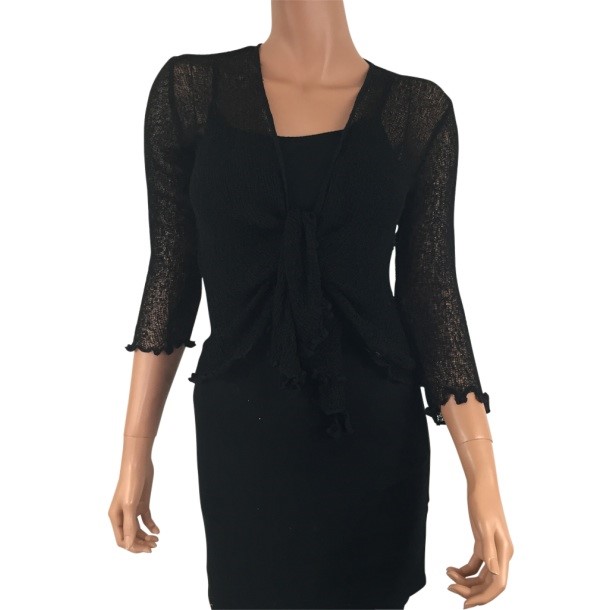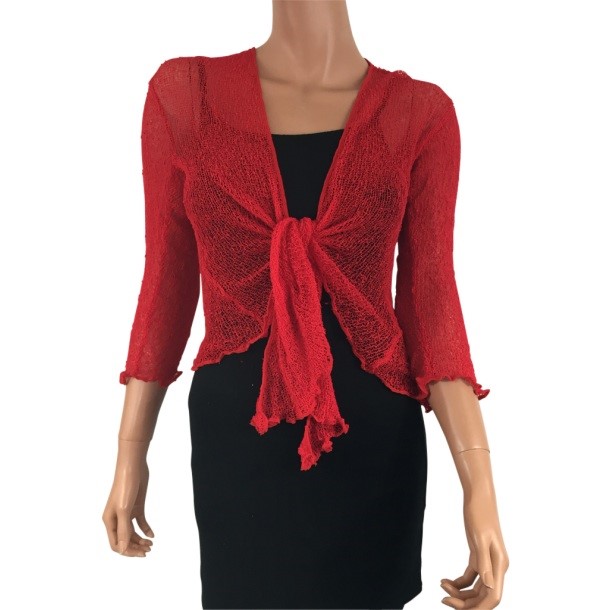 Jeg hælder mest til min lange røde kjole, men den er kun med spagettistropper, så jeg vil gerne have noget ud over - både for at tage lidt af evt. vind, men også for at gemme BH stropperne og mine mormorarme væk.