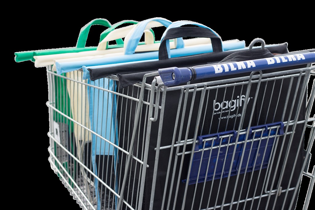 Super praktiske indkøbstasker, der med fire tasker kan sortere indkøbsvognen. Med Bagify Indkøbstasker får du fire tasker, der passer til alle indkøbsvogne. Med et enkelt skub åbnes alle tasker, som kan bruges til at sortere dine varer ved indkøbet.