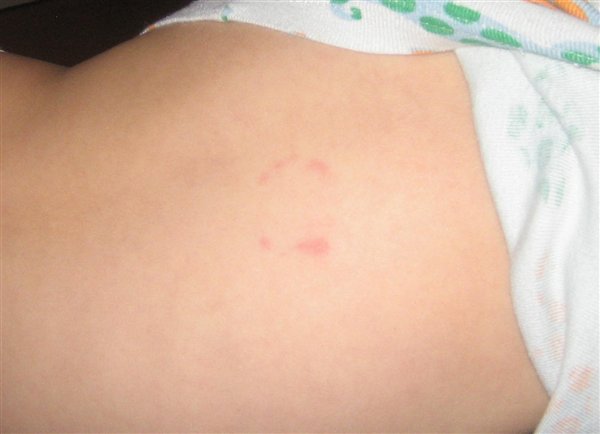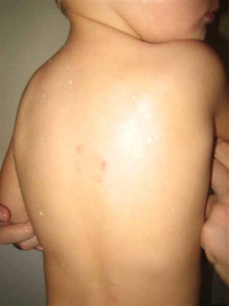 Ang det mærke du fandt, synes jeg det lyder underligt. Noah må jo have grædt da han blev bidt, og dermed må pæd jo have trøstst ham. Men måske har han ikke fortalt det gjorde ondt i ryggen, men bare været ulykkelig - og hvis de ikke har set noget, kigger de nok ikke automatisk ikke på ryggen... Men gør opmærksom på, at du undre dig lidt over at du ikke har fået det at vide. Så må du jo se, hvad de siger...