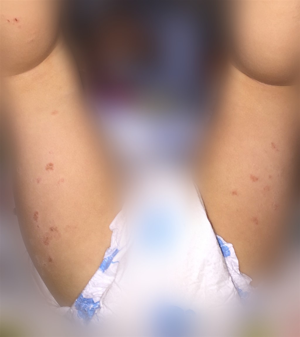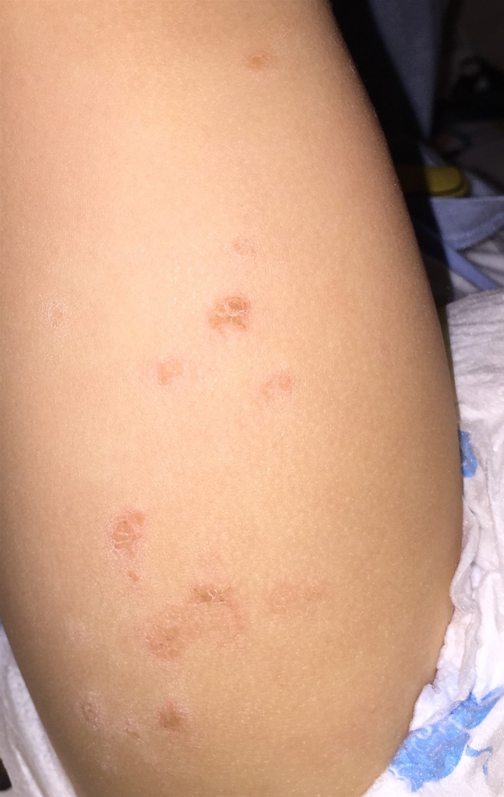 Det kunne godt ligne børnesår... Det starter som rødt udslet og små meget kløende knopper. Det kom på min søn på hænder, arme fødder og ben - og i plamager som hos her.