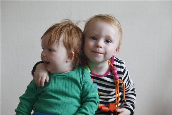 FruMOAR skriver: Jeg er lidt usikker på længde og vægt, men vil skyde på at Cornelia er omkring 70 cm og 7,5 kg.Og her er så lidt spritnye billeder af Cornelia og lidt med storesøster Ella også
