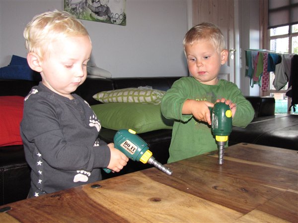 luksus hva, sådan med 2 håndværkere i huset på en gang også koster det ikke noget  dejlige unger.